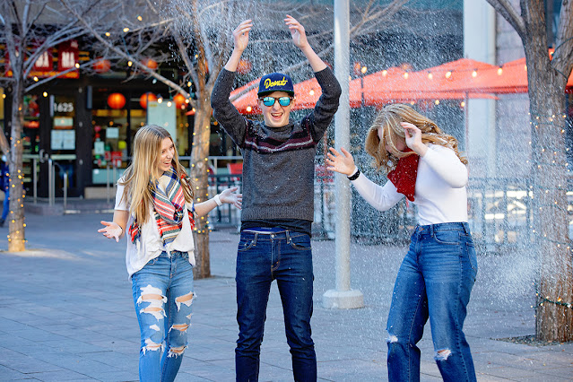 Oh the snow! I watched all the fake snow go up in the air and blow right into one of their faces... I felt so bad! For more information on High School Seniors, Portraits and Weddings call Natalie at 720-837-5378 or email natalie@nataliebeckphotography.com. You can see work at www.nataliebeckphotography.com